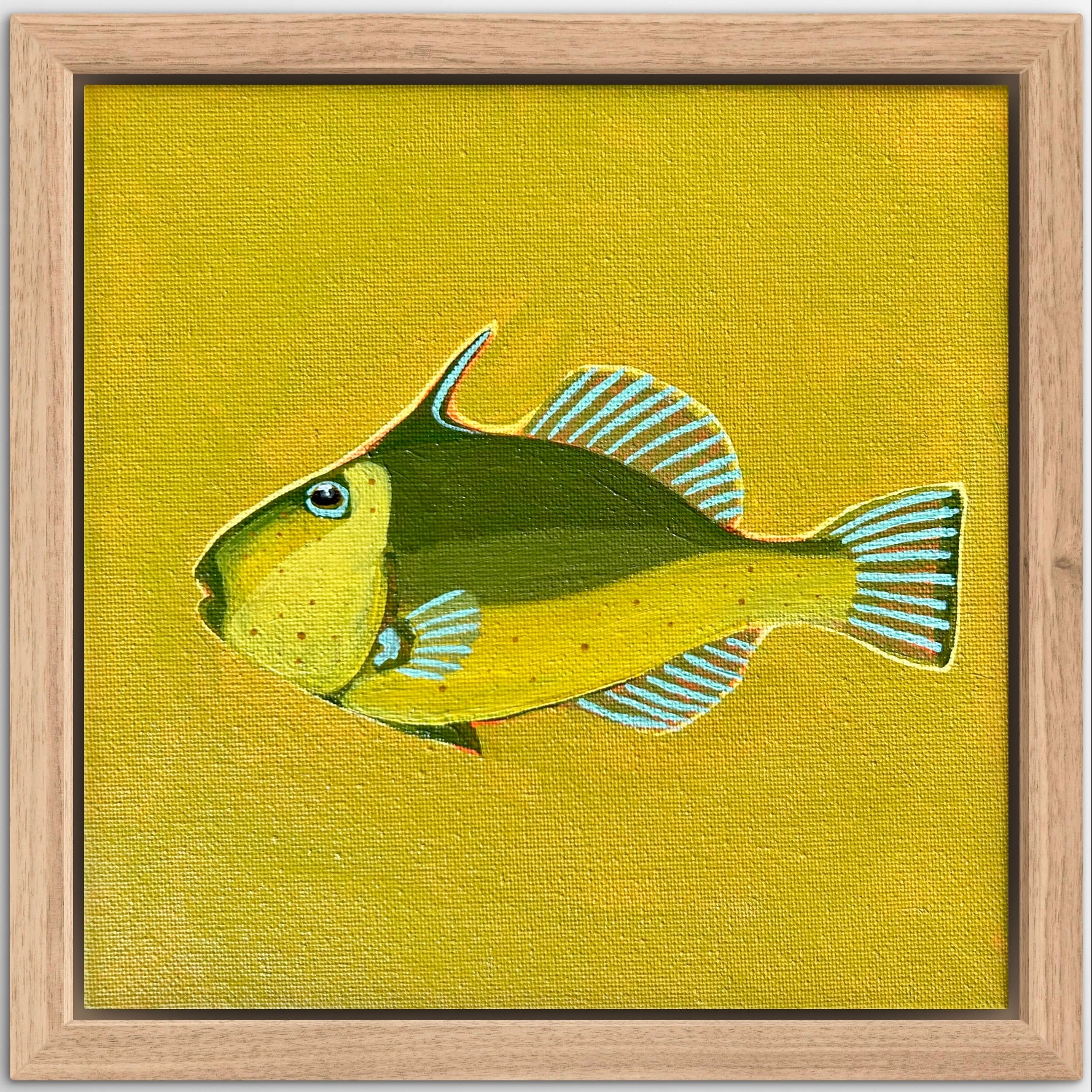23 x 23 cm original acrylic painting on stretched canvas, framed and ready to hang.